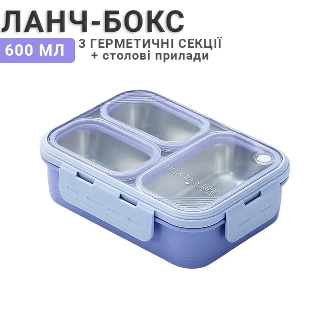 Термо ланч-бокс на три герметичні секції з металевою основою Just-S 600мл, фіолетовий