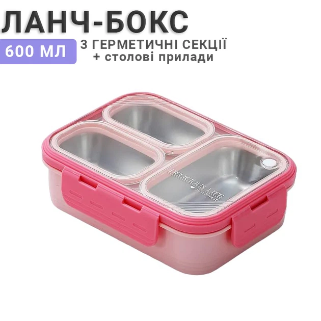 Термо ланч-бокс на три герметичні секції з металевою основою Just-S 600мл, рожевий