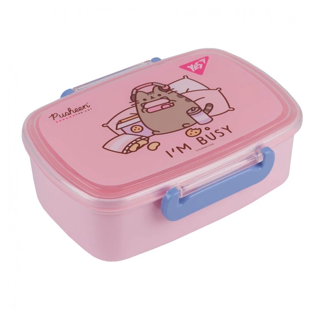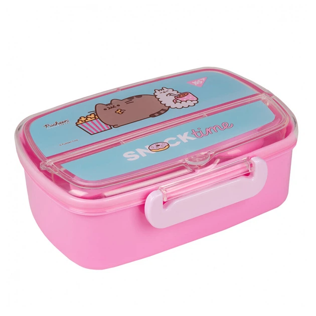 Ланчбокс Yes Pusheen "Кошенятко" 17.5х13х6 см 750 мл з приборами рожевий з блакитним (708161)