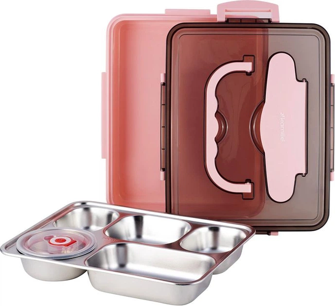 Ланч-бокс Kamille Snack 1000мл на 5 секцій, пластик та нержавіюча сталь, рожевий