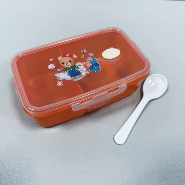 Ланч бокс пластиковий з двома відділами 17,5х11х6 см з пластиковою ложкою Stenson R99265 помаранчевий