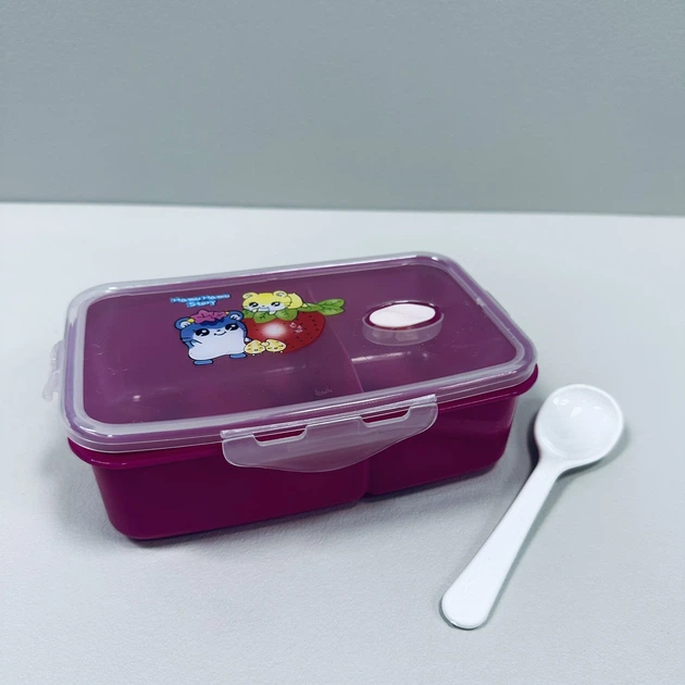 Ланч бокс пластиковий з двома відділами 17,5х11х6 см з пластиковою ложкою Stenson R99265 рожевий