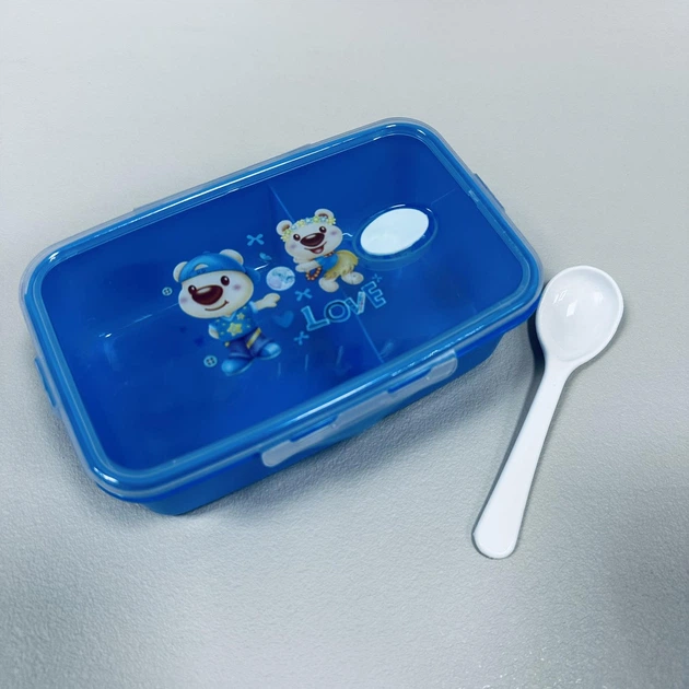 Ланч бокс пластиковий з двома відділами 17,5х11х6 см з пластиковою ложкою Stenson R99265 блакитний
