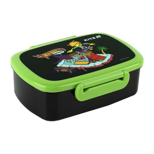 Ланчбокс Kite Hot Wheels Skate "Скейт Хотвілс" 750 мл з приборами чорний з салатовим (HW25-163)