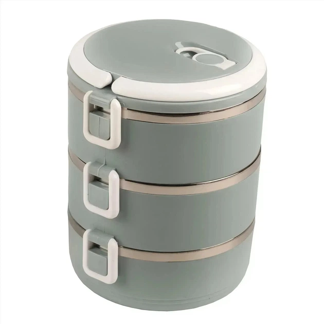 Ланч-бокс трисекційний круглий Supretto із нержавіючої сталі 1.5 мл, сіро-блакитний (79990003)