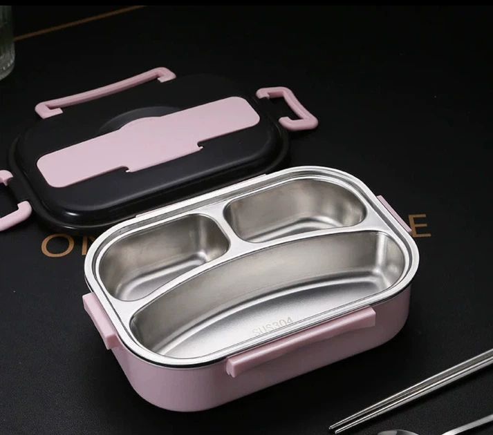 Ланч-бокс на 3 відділення з основою із нержавіючої сталі 304 , відсік для приладів 1л