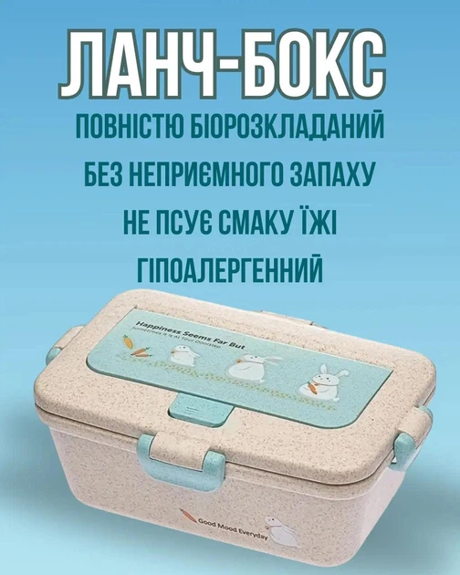 Ланч-бокс EcoSapiens Bunny, 950 мл з екоматеріалу, бірюзовий, контейнер для їжі, коробка для обіду