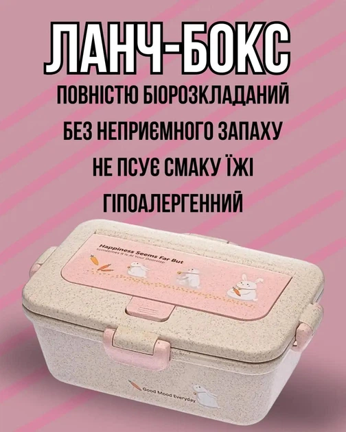 Ланч-бокс EcoSapiens Bunny, 950 мл з екоматеріалу, рожевий, контейнер для їжі, коробка для обіду
