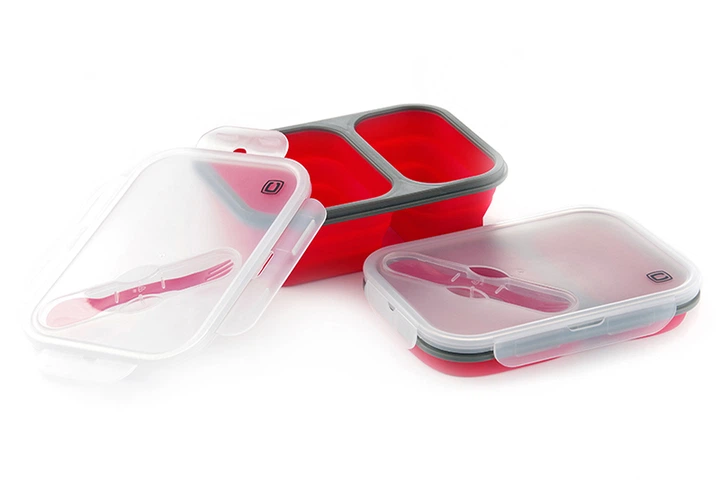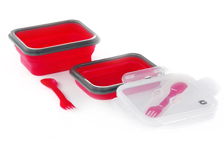 Ланчбокс складний з кришкою-заскочкою та ловилкою червоний 400мл/650мл СИЛА (960566)