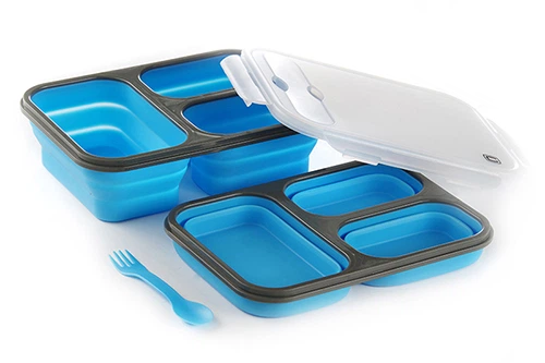 Ланчбокс складаний з кришкою-засувкою блакитною 350мл/350мл/650мл СИЛА (960567)