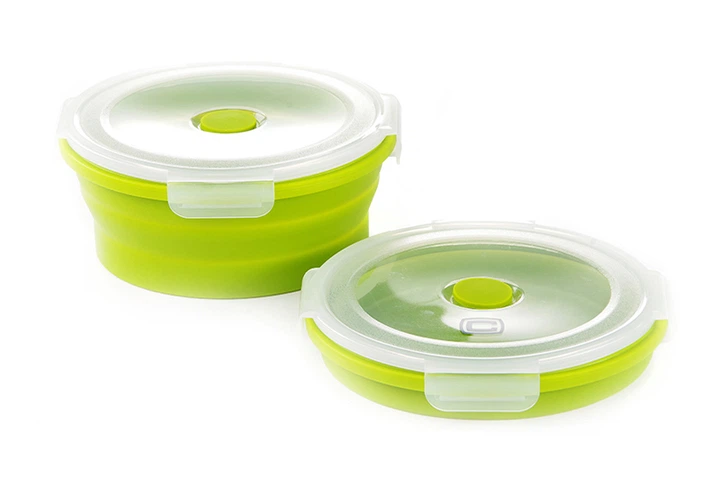 Ланчбокс складаний з кришкою-засувкою круглий зелений 900мл СИЛА (960565)