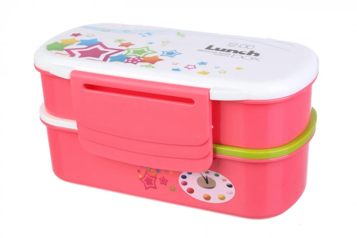 Ланчбокс, 800 мл, 2 рівні + міні ложка та вилка, 20*11*10см рожевий