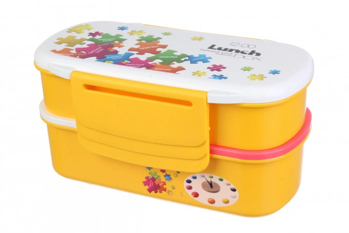 Ланчбокс, 800 мл, 2 рівні+ міні ложка та вилка, 20*11*10см жовтий