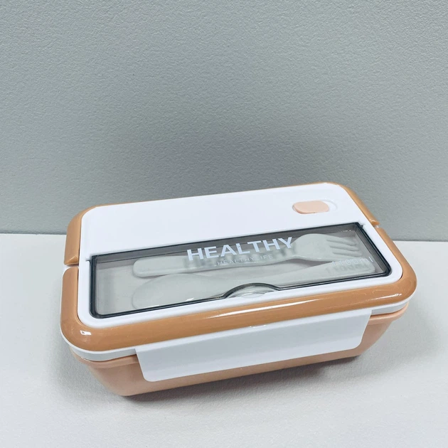 Ланч бокс пластиковий зі столовими приборами з двома відділами A-Plus 3036 персиковий з білим