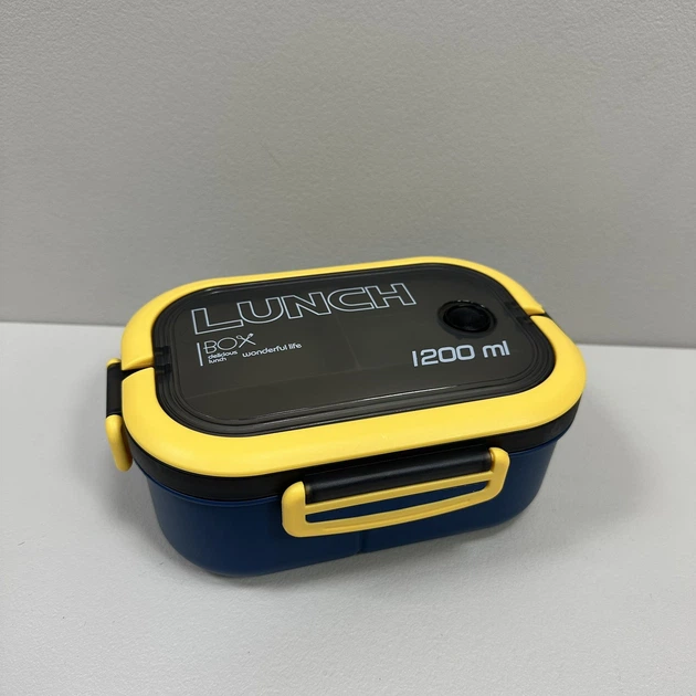 Ланч-бокс на три відділи пластиковий з вкладом A-Plus 3107 синій з жовтим