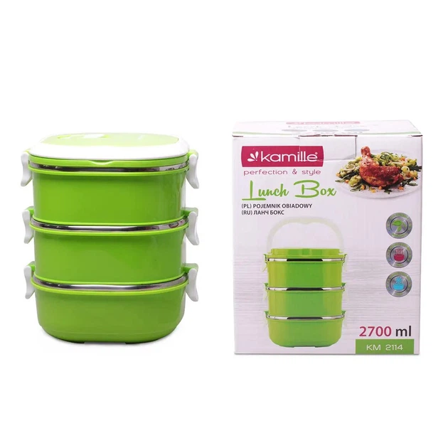 Ланч-бокс потрійний Kamille 2700 мл для других страв Салатовий