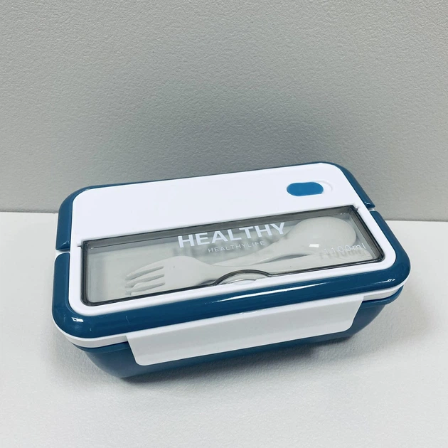 Ланч бокс пластиковий зі столовими приборами з двома відділами A-Plus 3036 синій з білим