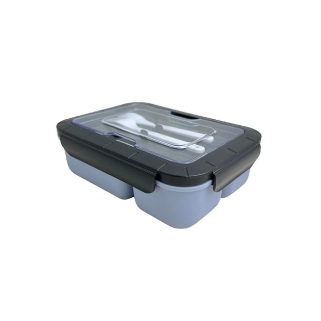 Ланч-бокс 1000 мл чорно-сірий з приладами всередині 3 відділення