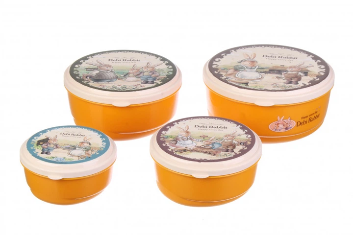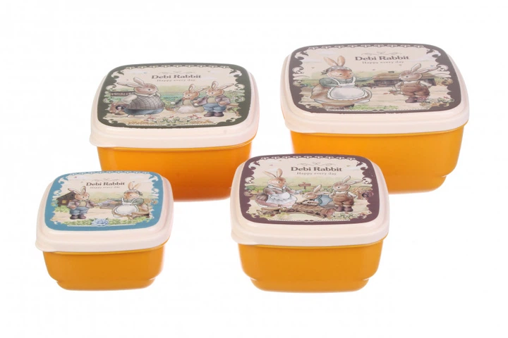 Набір ланчбоксів 400/320/180/120мл, 4 шт. жовті з бежевими кришками