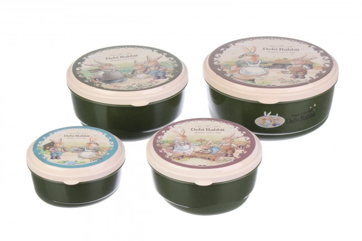 Набір ланчбоксів 430/350/200/120мл, 4 шт. зелені з бежевими кришками
