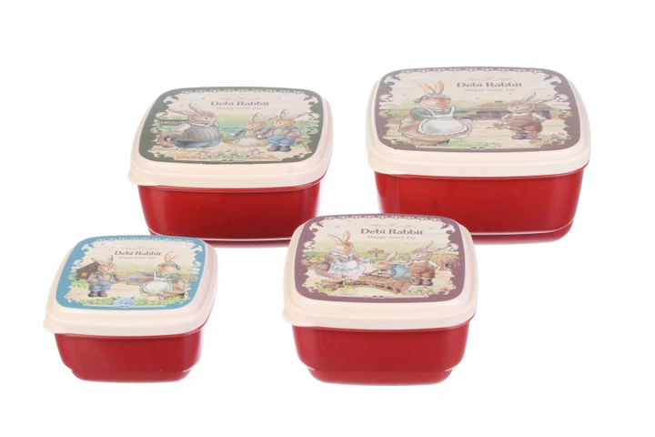 Набір ланчбоксів 400/320/180/120мл, 4 шт. червоні з бежевими кришками