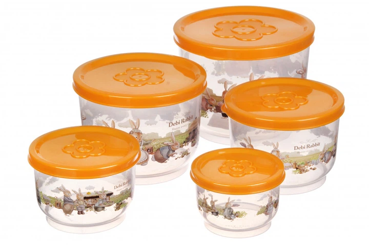Набір ланчбоксів 1000/700/450/250/150мл, 5 шт. прозорі з жовтими кришками