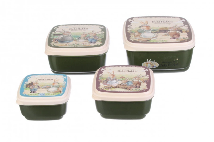 Набір ланчбоксів 400/320/180/120мл, 4 шт. зелені з бежевими кришками