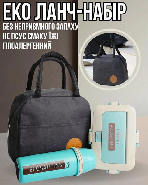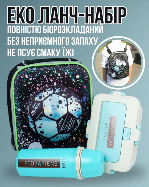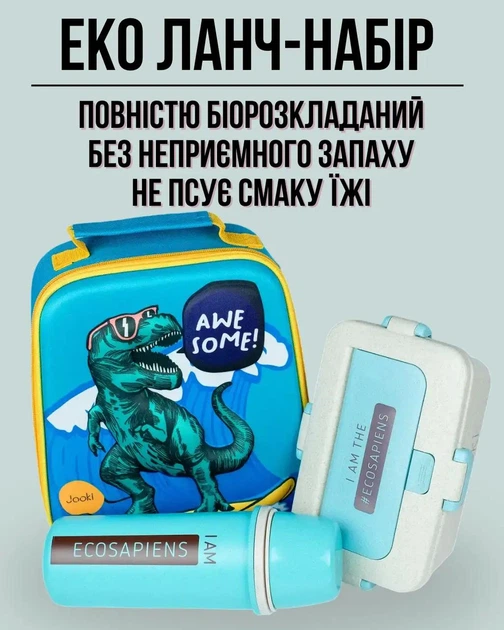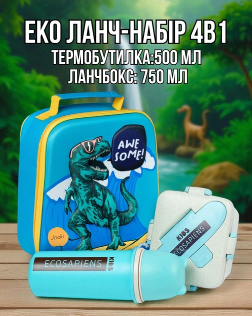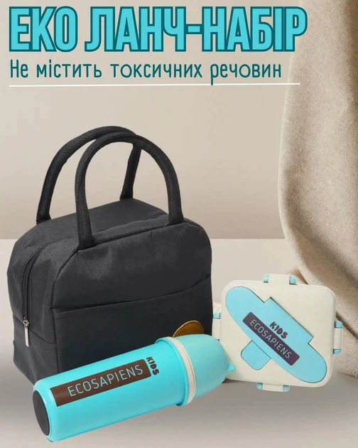 Еко ланч-набір 5в1 Brivilas: термосумка, термобутилка Ecosapiens Kids 500 мл, ланчбокс Ecosapiens Kids 750 мл набір для школ