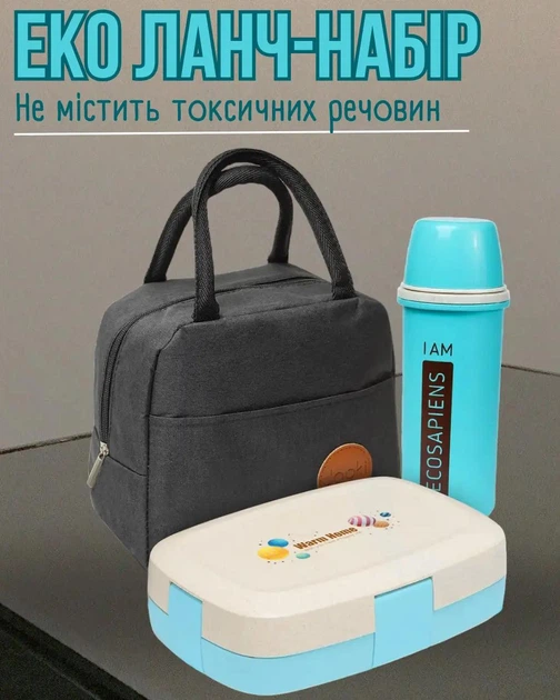 Еко ланч-набір 5в1 термосумка Brivilas термобутилка 500 мл ланчбокс 950 мл набір для школи та офісу