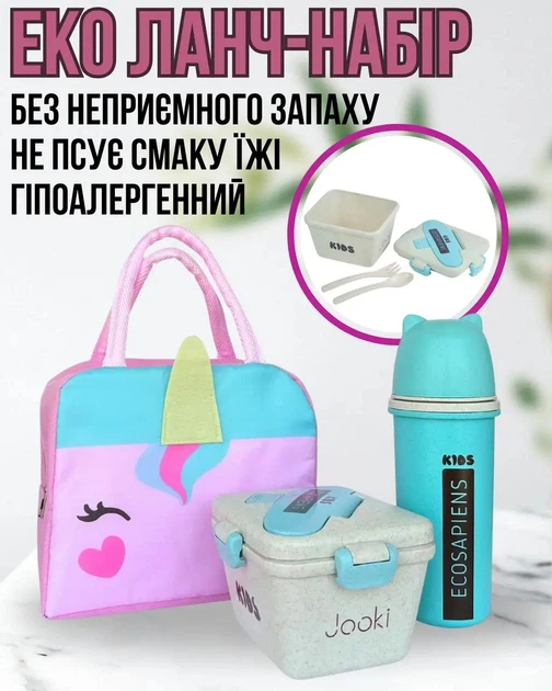 Еко ланч-набір 3в1 термосумка Unicorn термобутилка 500 мл ланчбокс 750 мл набір для школи та офісу