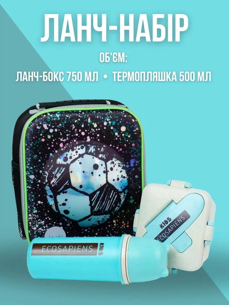 Еко ланч-набір: 3D термо-рюкзак Football, термобутилка 500 мл, ланчбокс 750 мл набір для школи обідів дітей