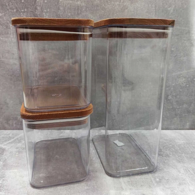 Набір з 3-х харчових контейнерів Wellini, з кришкою з дерева Туреччина, 14-8w