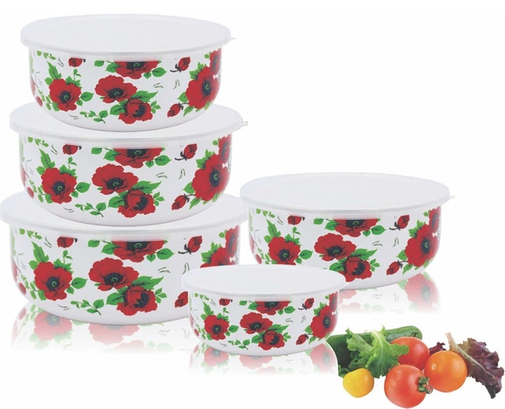 Набір судочків Edenberg з емальованої сталі 5шт із пластиковими кришками (EB-12612)