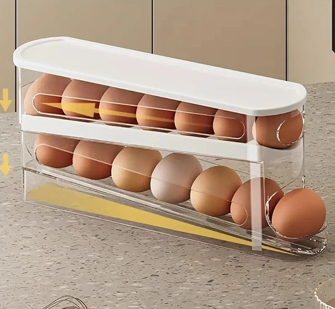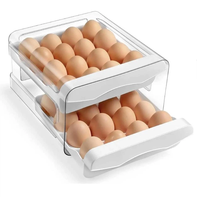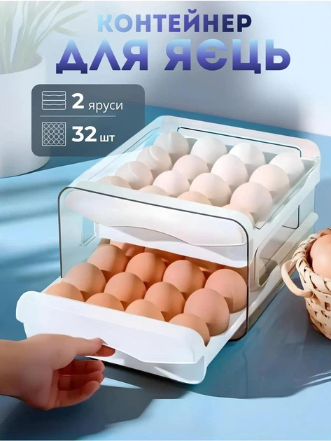 Контейнер для яєць 2-рівневий — 32 шт, висувні ящики, закрите зберігання, міцний харчовий пластик