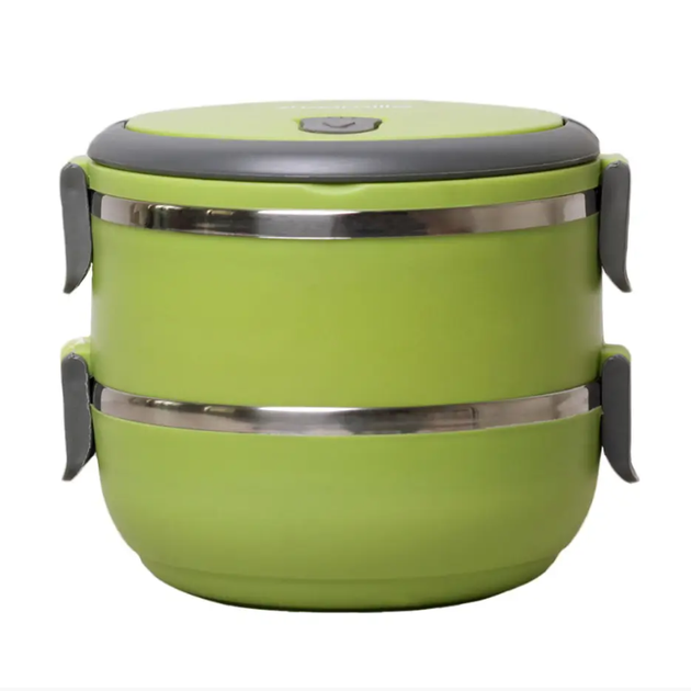 Ланч бокс Kamille подвійний із пластику та нержавіючої сталі 1400 мл 16,5 см x 15 см x 13,5 см Салатовий