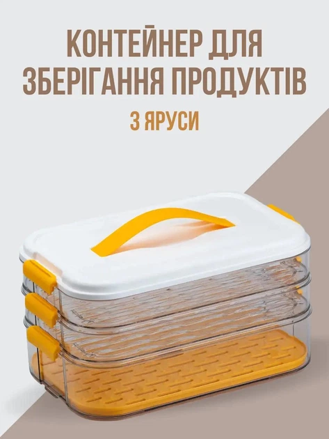 Контейнер для заморожування та зберігання продуктів 3-ярусний у холодильнику 16.5 см Помаранчевий