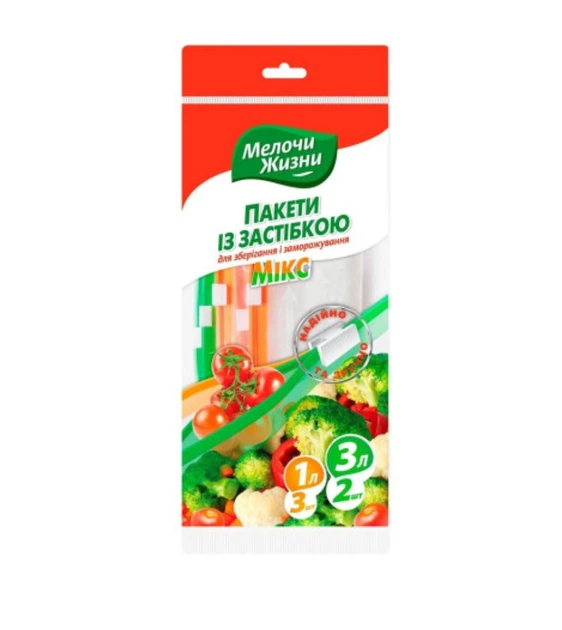 Пакети для заморозки Дрібниці Життя Мікс із застібкою 1л 3шт, 3л 2шт