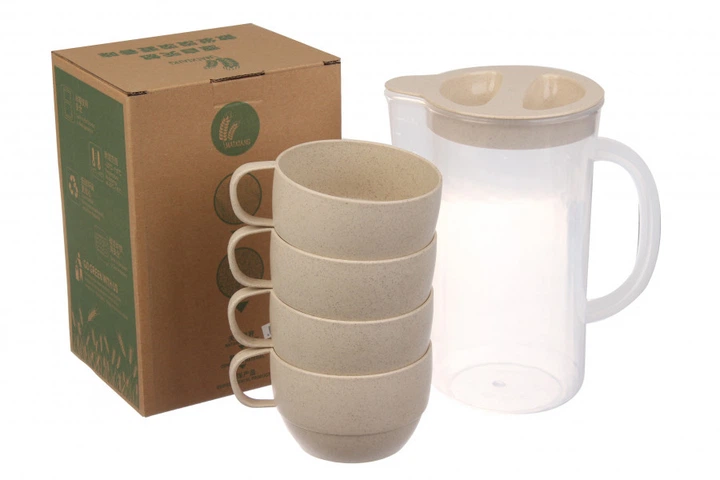 Набір глечик 1,6л і 4 чашки 360 мл, еко-пластик, колір бежевий