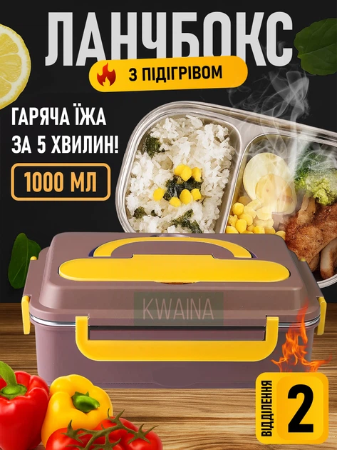 Ланч бокс з підігрівом харчовий контейнер з електронагрівом для їжі на 1л (від мережі 220 або прикурювача 12в), Коричневий