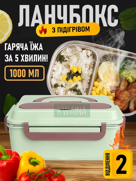 Ланч бокс з підігрівом для їжі 2в1 220В + 12V термос харчовий судок, салатовий