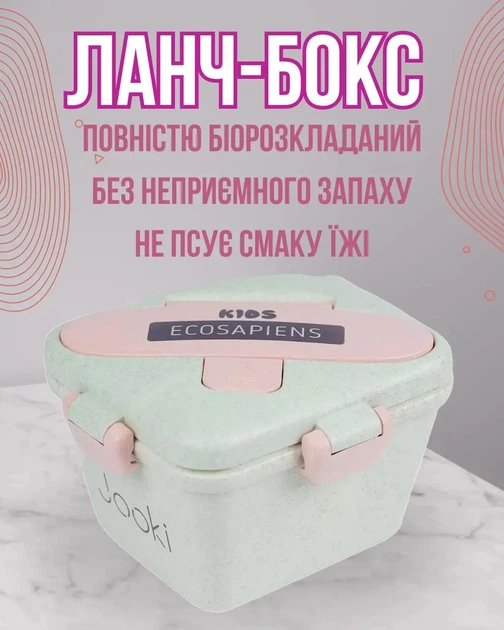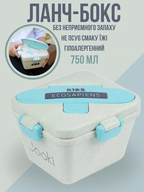 Ланч бокс “Ecosapien Kids” з екоматеріалу, бірюзовий 750 мл, Контейнер для їжі, дитячий бокс, коробка для обіду