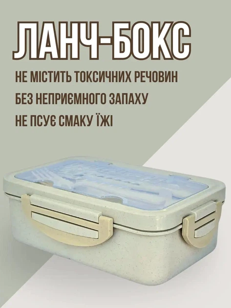Ланч бокс “Ecosapien” з екоматеріалу, з трьома секціями та приборами, бірюзовий 1000 мл, контейнер для їжі, коробка для обід