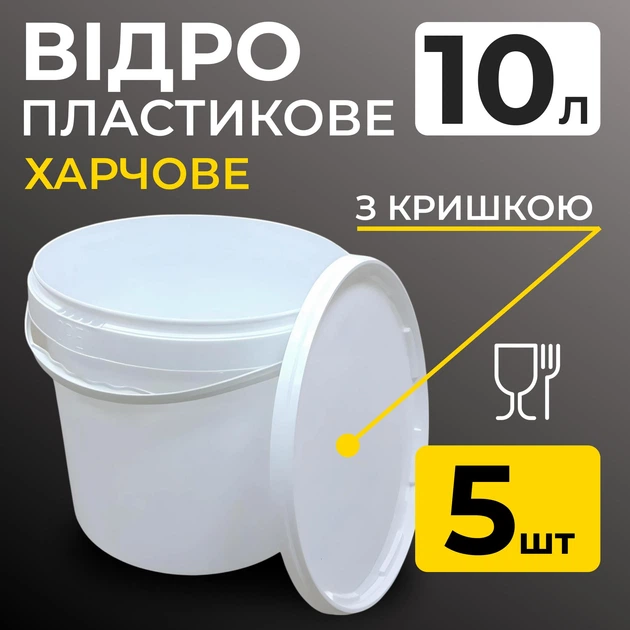 Відро харчове пластикове 10 л (з кришкою) 5 шт