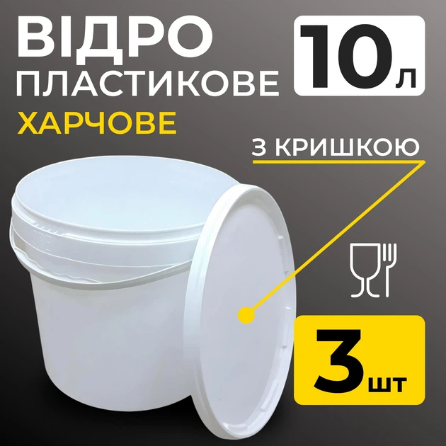 Відро харчове пластикове 10 л (з кришкою) 3 шт