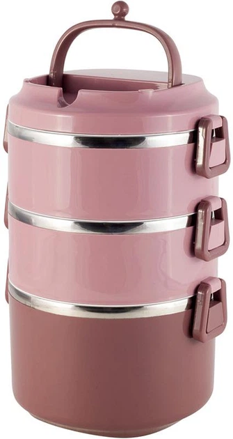 Ланч-бокс Kamille Snack 2400мл трирівневий, пластик та нержавіюча сталь, рожевий KM-2137PN