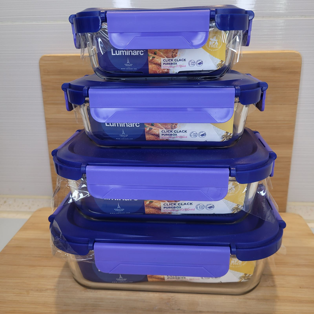 Набір контейнерів прямокутних термостійких Luminarc Pure box Click Clack (1520; 1040; 670; 370 мл) (X0089)