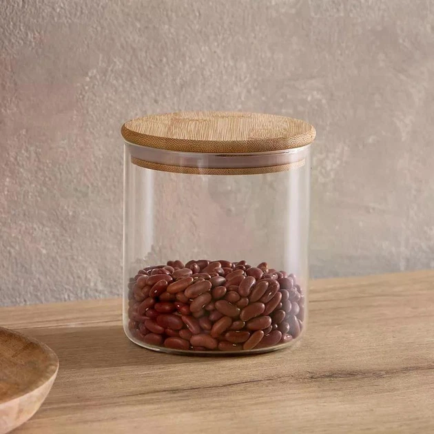 Скляний контейнер з бамбуковою кришкою "Orbita" 8,5x12 см (0,65 л)