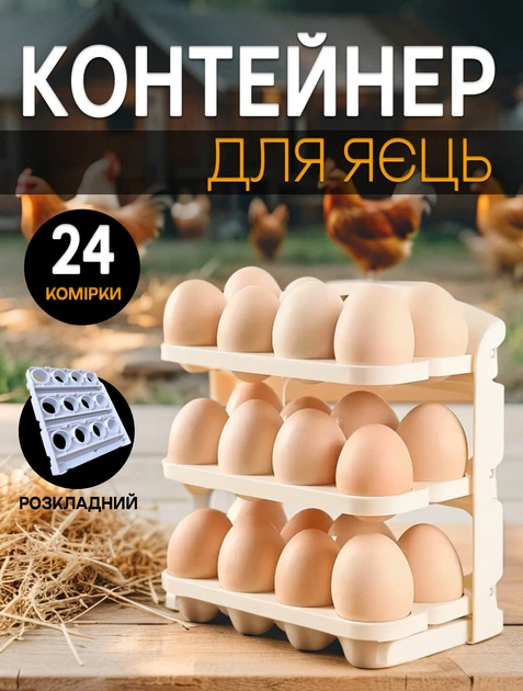 Розкладний контейнер лоток для яєць 4 рівня A-Plus на 24 яйця, складні полиці, ручка для перенесення