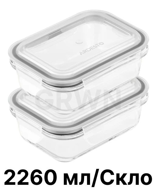 Набір контейнерів для зберігання скляних - 2 шт Ardesto Gemini термостійкі прямокутний 2.26 л AR1222RC