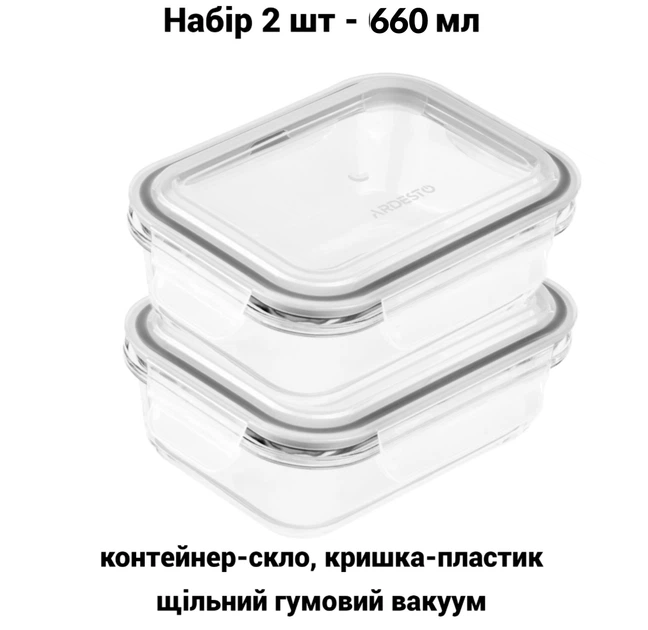 Набір контейнерів для зберігання скляних - 2 шт Ardesto Gemini термостійкі прямокутні 660 мл AR1260BRC
